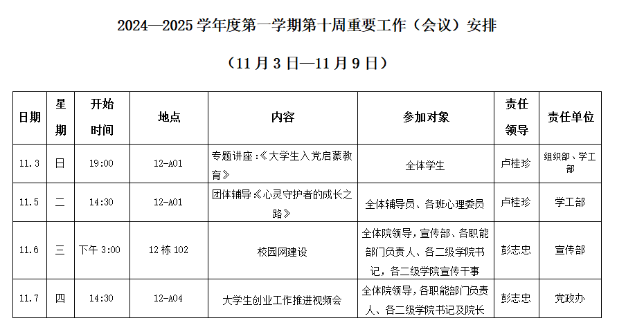 2024—2025学年度第一学期第十周重要工作(会议)安排(11月3日-11月9日)_周工作安排_皇冠app安卓下载安装