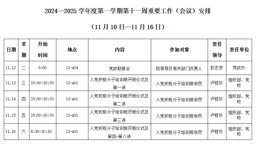2024—2025学年度第一学期第十一周重要工作(会议)安排(11月10日-11月16日)_周工作安排_皇冠app安卓下载安装