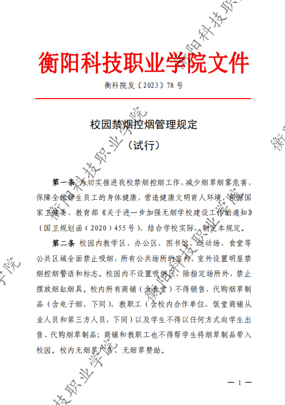 皇冠365官方app校园禁烟控烟管理规定(试行)_相关制度_皇冠365官方app