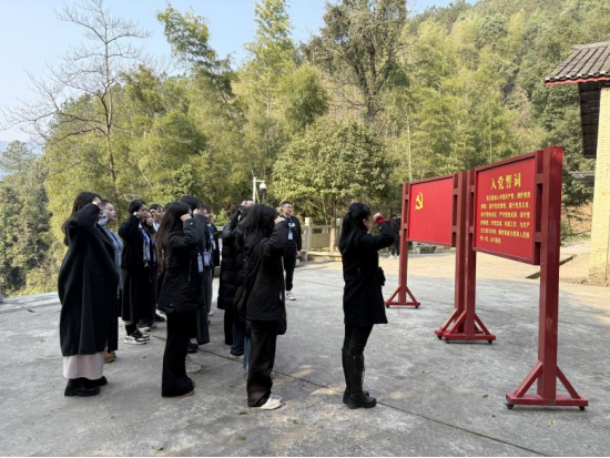 在陶铸故居前,全体党员同志在柳玉红书记的带领下重温了入党誓词,通过重温入党誓词,党员同志们可以更加清晰地认识到自己的使命和责任,更加坚定地信仰共产主义事业,更加积极地投身到党的各项工作中去。同时,也提醒着党员时刻保持清醒的头脑,牢记党的宗旨和纪律,不断加强党性修养,做到言行一致,表里如一。