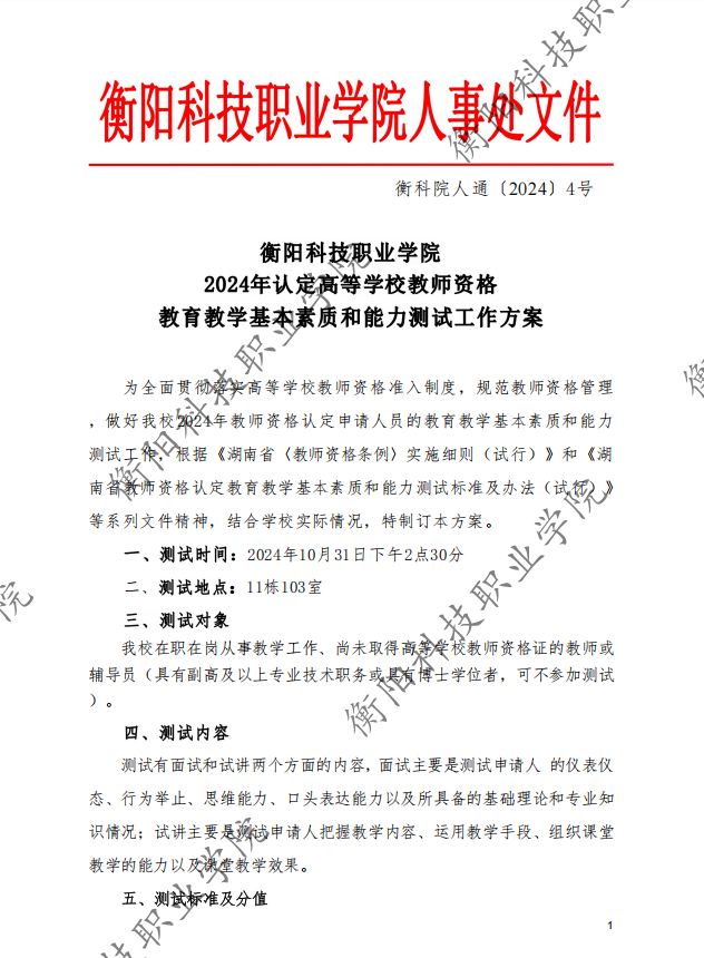 衡科院人通〔2024〕04号关于做好2024年下半年高校教师资格认定工作的通知