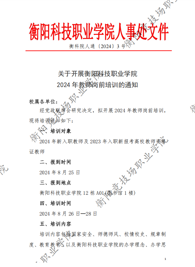 衡科院人通〔2024〕03号关于开展皇冠app安卓下载安装2024年教师岗前培训的通知_通知公告_皇冠app安卓下载安装
