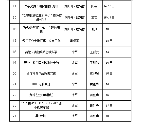 皇冠app安卓下载安装党政办、宣传部、信息中心 第八周工作安排_周工作安排_皇冠app安卓下载安装