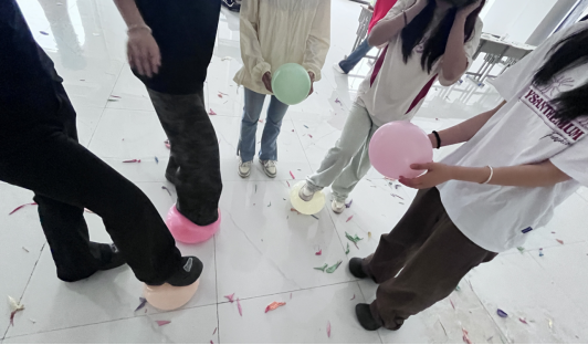 压力释放区俨然是一个 “能量充电站”。“爆破压力球” 摊位前,气球被吹得鼓鼓囊囊,“作业太多”“害怕考试” 等压力源字样在球面上清晰可见。随着一声声 “砰!砰!” 的爆裂声,同学们踩爆的不仅是气球,更是积压已久的紧绷感。
