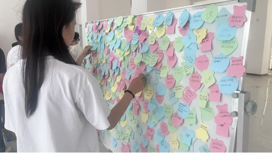 自我认识区宛如一面心灵的镜子,照见同学们的内在光芒。“生命画卷” 摊位上,画纸被分成三个板块,同学们用不同的色彩勾勒 “过去的我”“现在的我”“未来的我”。有人用灰色描绘过去的迷茫,用彩色涂抹现在的充实,用金色勾勒未来的憧憬;有人则用连续的线条展现成长的连贯性,每一笔都蕴含着对自我的深度认知。