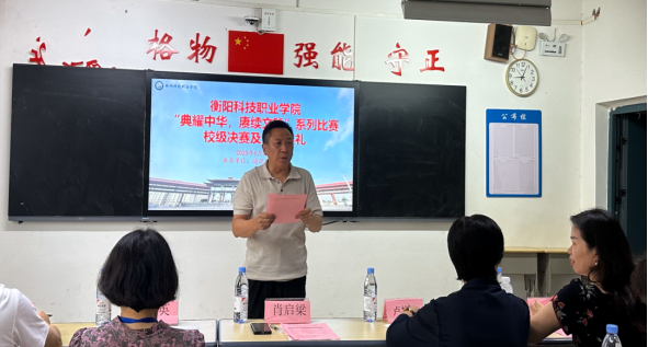 学院常务副院长肖启梁、副院长卢桂珍、副院长马嫦英、副院长周霞丽亲临比赛现场,肖启梁副院长致开幕辞,他充分肯定了“诗教中国”系列活动对校园文化建设的重要意义。他指出,中华经典承载着中华民族的精神血脉与文化根基,期待同学们在诵读、讲解与书写中体悟经典魅力、坚定文化自信、涵养家国情怀。