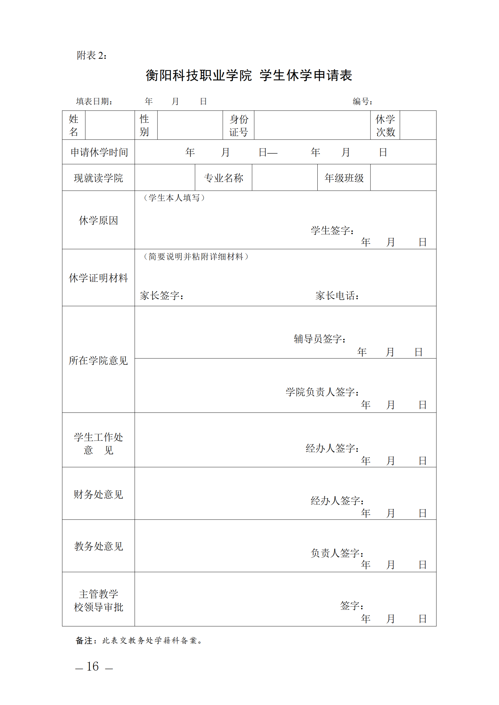 学生休学申请表