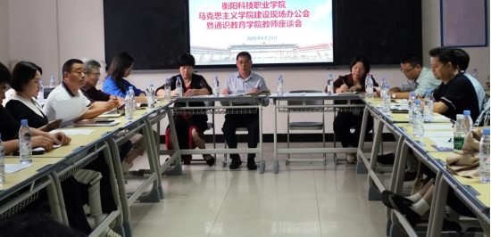 在现场办公会期间,马克思主义学院与通识教育学院院长张长明首先汇报学院建设工作。他指出,马院始终坚守 “马院姓马、在马言马” 政治站位,以党的领导统筹各项工作;创新采用案例式教学、小组讨论等方法,结合红色场馆开展 “行走的思政课”,学生思政课满意度超90%,相关实地教学活动获衡阳电视台报道;现有专兼职教师思政教师约 22 人,通过培训、技能大赛提升教师素养,近年还申报市厅级科研项目 5 项。同时,他也坦言马院存在师资薄弱、经费短缺、部分必开思政与通识课仅能线上开设等问题,并明确短期优化课程、引才,中期强学科、促合作,长期建省内一流马院的目标,以及从师资、教学、科研、资源整合四方面推进建设的规划。