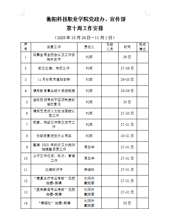 皇冠app安卓下载安装党政办、宣传部 第十周工作安排(10月26日-11月1日)_周工作安排_皇冠app安卓下载安装