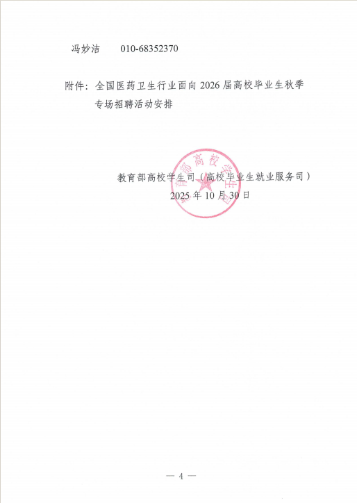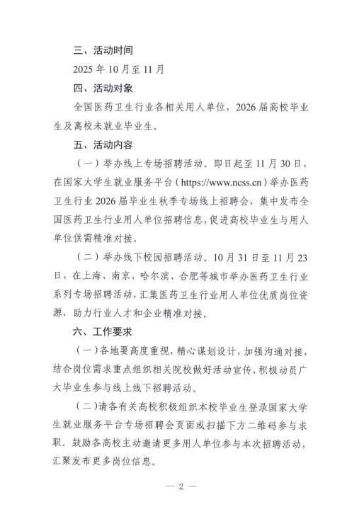 关于举办全国医药卫生行业面向2026届高校毕业生秋季招聘活动的通知:附件
