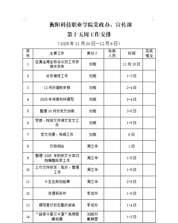 皇冠app安卓下载安装党政办、宣传部 第十五周工作安排(11月30日-12月6日)_周工作安排_皇冠app安卓下载安装