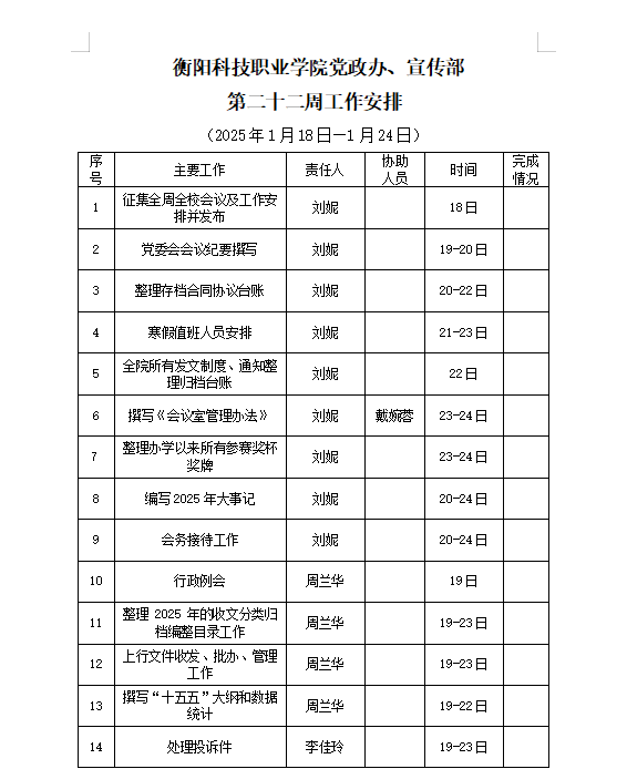 皇冠app安卓下载安装党政办、宣传部 第二十二周工作安排(1月18-1月24日)