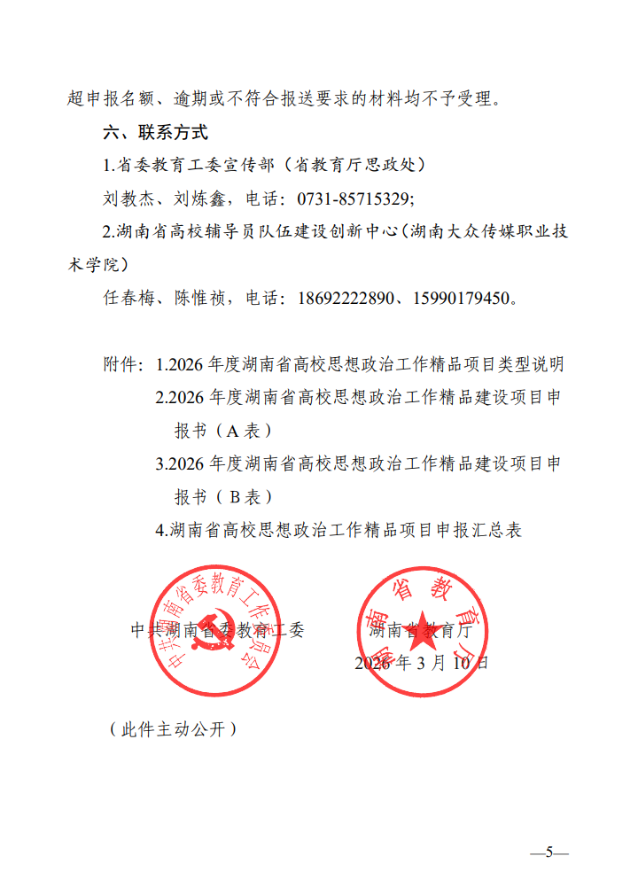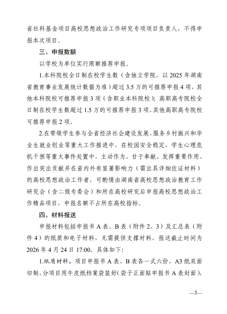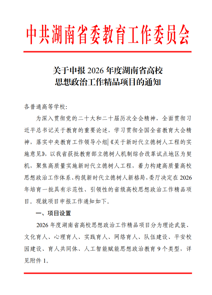关于申报2026年度湖南省高校思想政治工作精品项目的通知