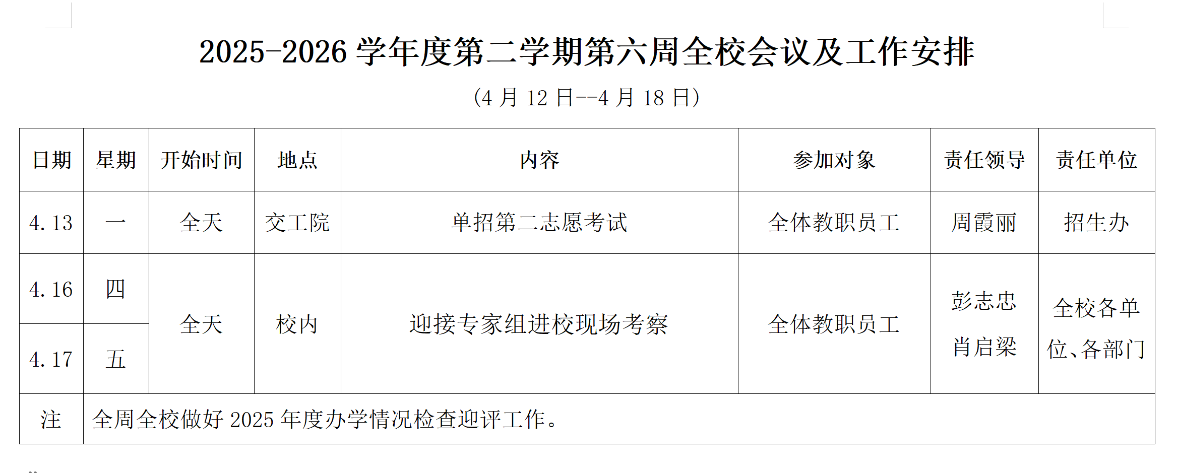 第六周工作安排_通知公告_皇冠365官方app